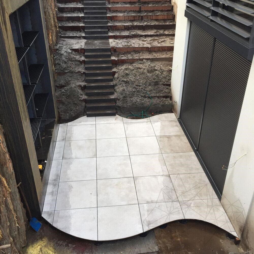 BERA® Pedestals HiLo Fix have been designed by and for professionals in creation of gardens and terraces. They are made of 100% recycled and re-enforced polypropylene, eliminating the need for bedding sand and/or of brick or other methods for installation of raised ceramic pavers or wooden/composite decking. Easy drainage of water and installation of electric systems under the void space ensures extended life-span of the decking material and pavers and high quality finish of the terrace. Damaged ceramic tiles can easily be replaced without any difficulties.