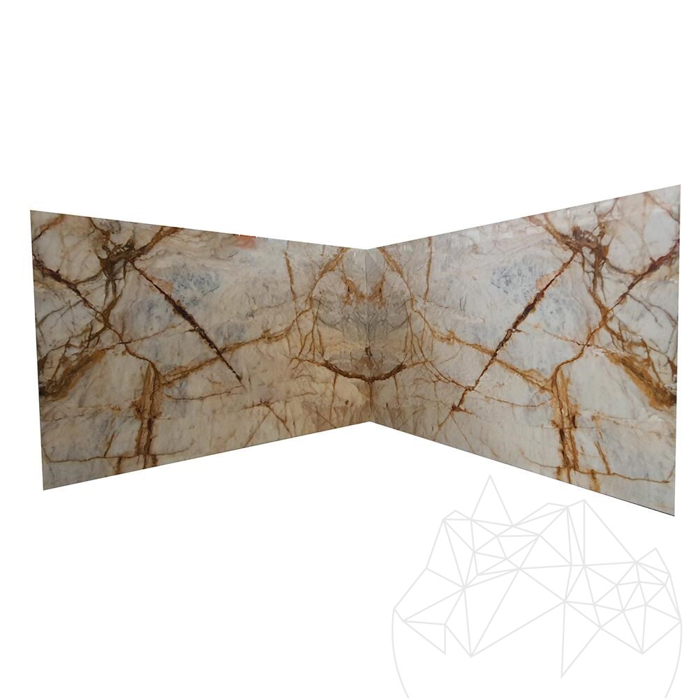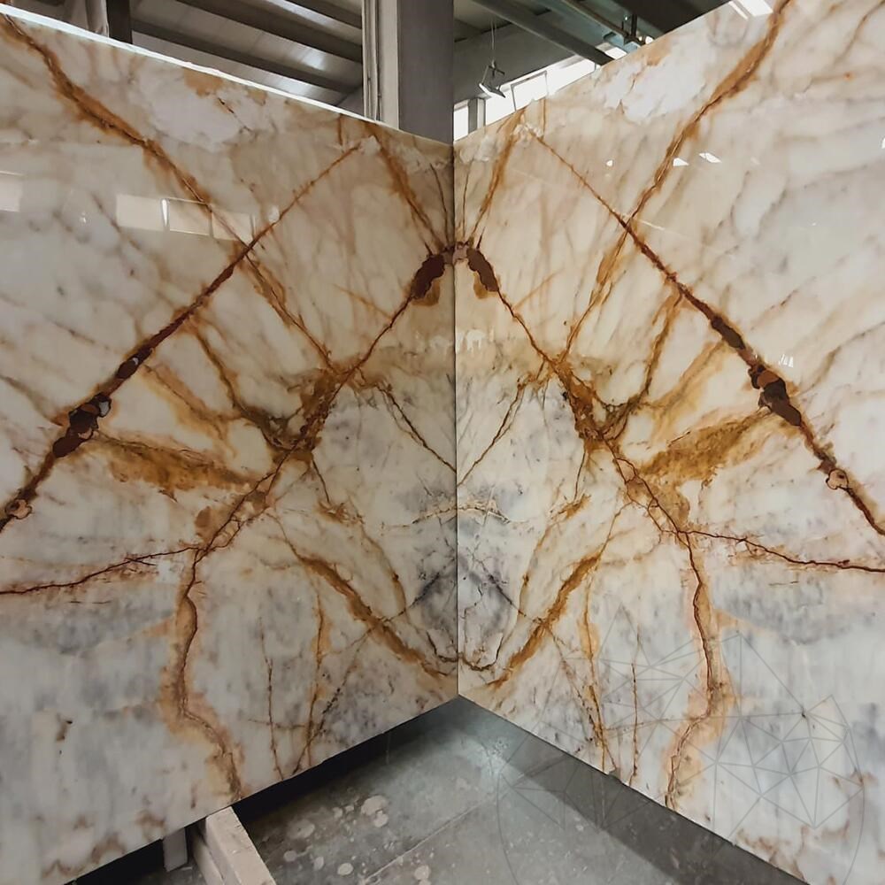 Follow the Calacatta Gold marble phases from our slab portfolio, with the evolution of the golden knot, when everything remains mixed in an attempt to find an unpredictable ending.