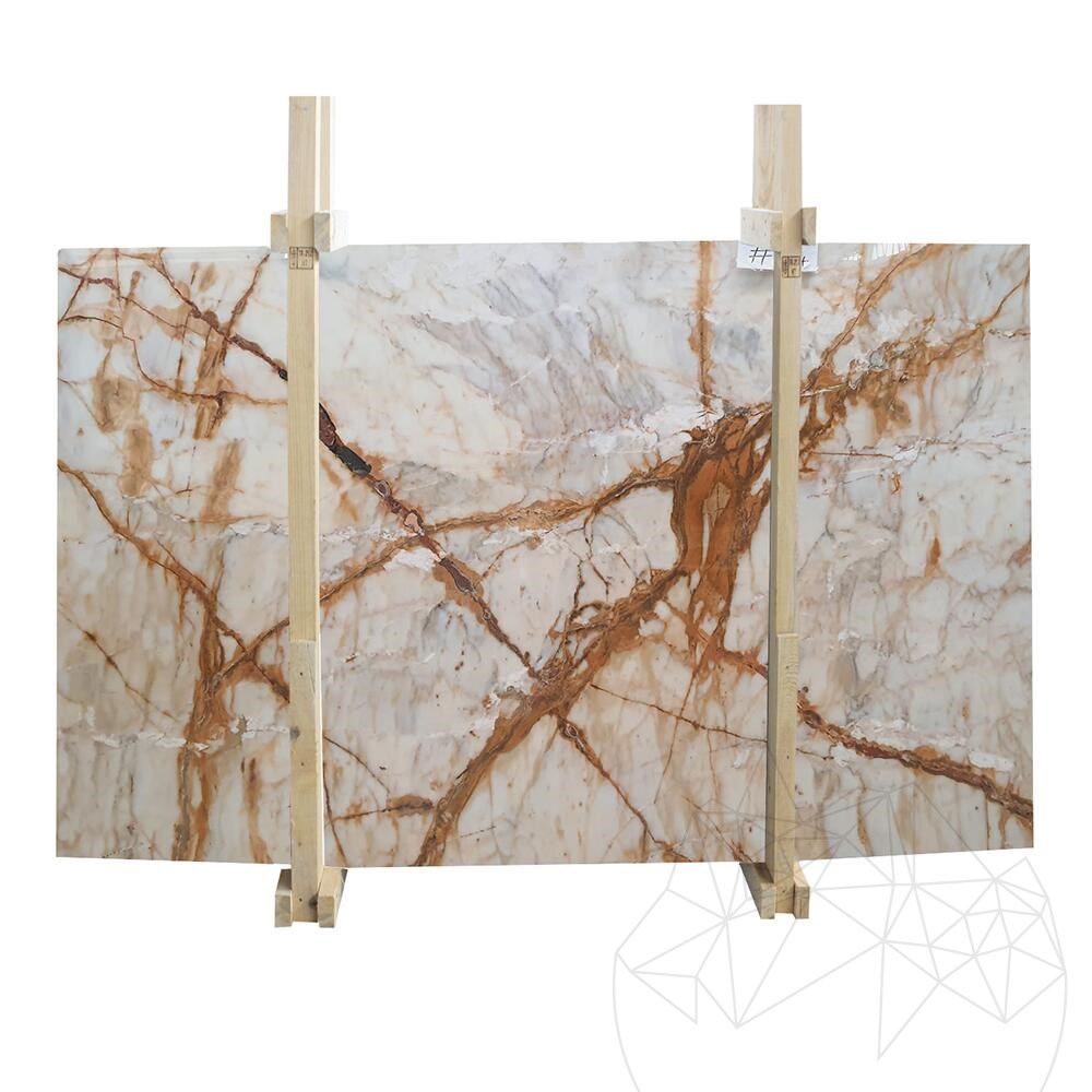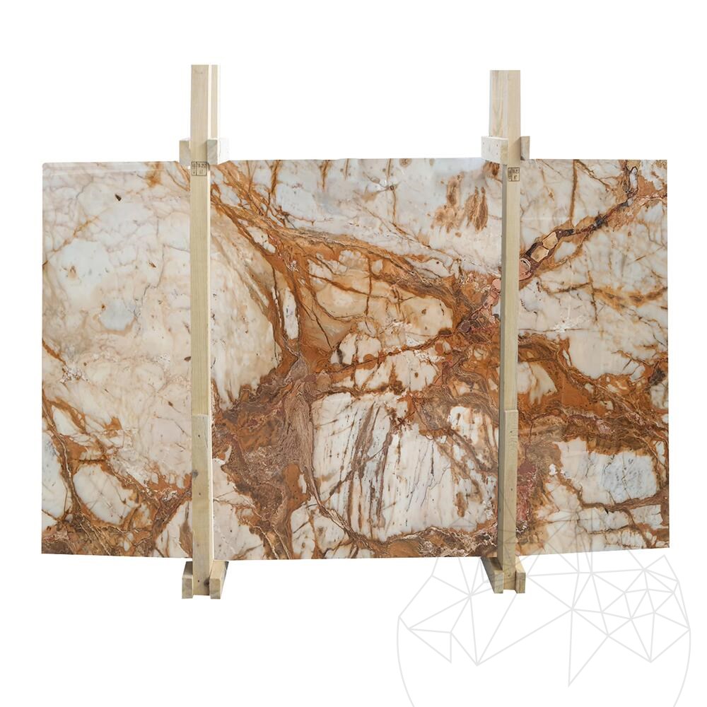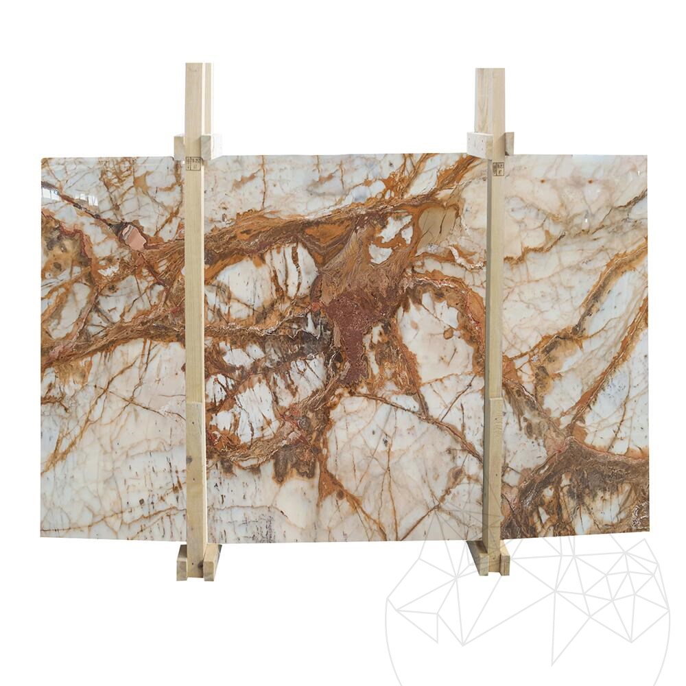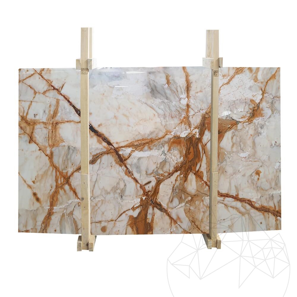 The slab assumes the final natural look of stone, the most advanced option to maintain its original feature. Whatever takes place later is about the industry, yet splitting a massive stone block into slices keeps the stone and its initial purpose, delivering magic confined in millions of years of unsuspected existence.