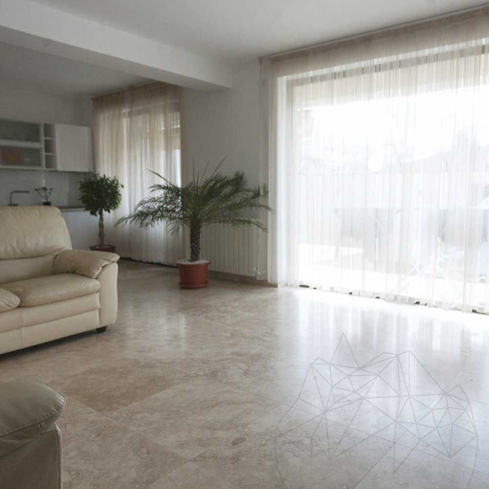 A living room or any large area can be well highlighted using the Classic PREMIUM Cross Cut travertine tiles, with a square shape and a 61 cm side. Being so large and requiring fewer joints, these tiles induce a feeling of vast openess, makin a space appear bigger than it actually is. The qualities of this product may benefit, depending on the design, any small or medium space such as kitchens, bathrooms or hallways. Besides the already mentioned uses, the matte Classic Cross Cut travertine tiles can be used as steps, countertops, fireplace claddings etc. In exterior design, this product works perfectly for cladding facades, home bases or fences.