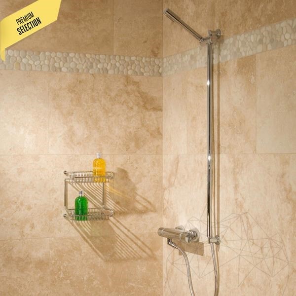 A classic model of travertine cladding which creates the feeling of an enlarged space. This classic travertine’s nuances have the great quality of bringing a warm and relaxing feeling to any arrangements, while the polished finish offers the surface of the stone a bright, shiny aspect which will be very well highlighted by natural or artificial light. It is recommended to treat the surface with a sealant after installing it (ex. LTP MPG 1L=15sqm), in order to enhance its resistance in contact with water, oil etc.