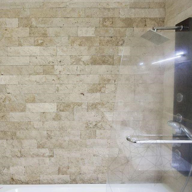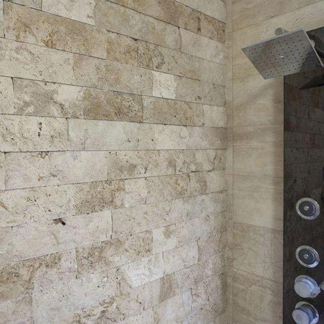 This travertine panel can be used for diagonal wall cladding installed with many different patterns in a restaurant or café. When used for residential decoration projects, Classic Splitface Travertine 10 cm x LL x 2.2 cm could be a perfect match for kitchens and hallways, but also fence cladding, for example.