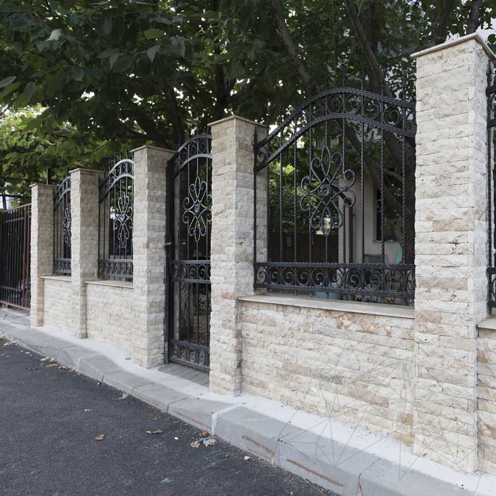 Decorative natural stone such as the Classic splitface travertine can be used for both interior and exterior claddings, resulting in customized fences, facades, interior walls as well as public spaces like pubs, restaurants and even clothing or jewelry stores. It is extremely adaptable to any decoration and very easy to apply. This natural stone is always in stock. You can order it right now! We deliver internationally, no matter the quantity.