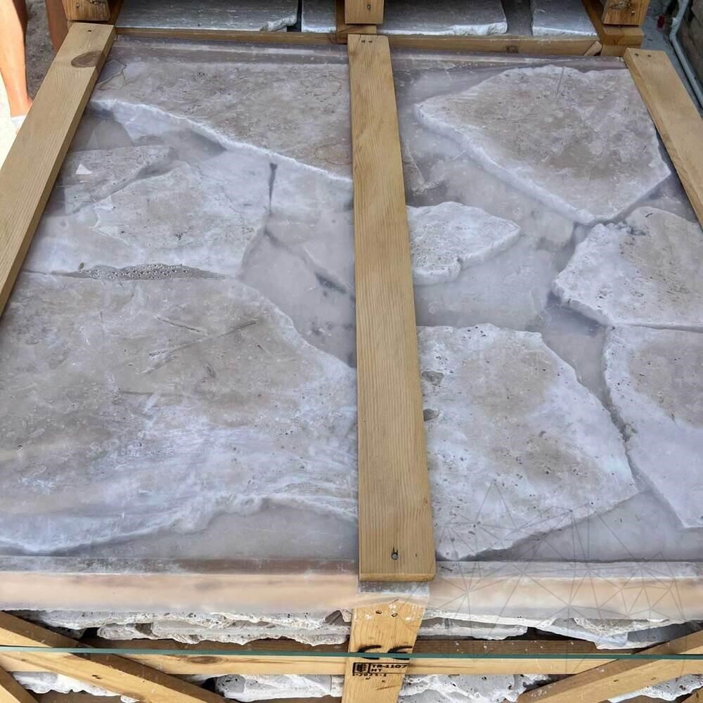 Classic Travertine Antique Crazy Paving is an impressive choice for any interior or exterior design project. With a rustic look and antiqued finish, this travertine adds a touch of elegance and sophistication to any space. The 9-10 pieces that make up a square meter transform this product into a spectacular blend of shapes and sizes, thus creating a particularly eye-catching effect.