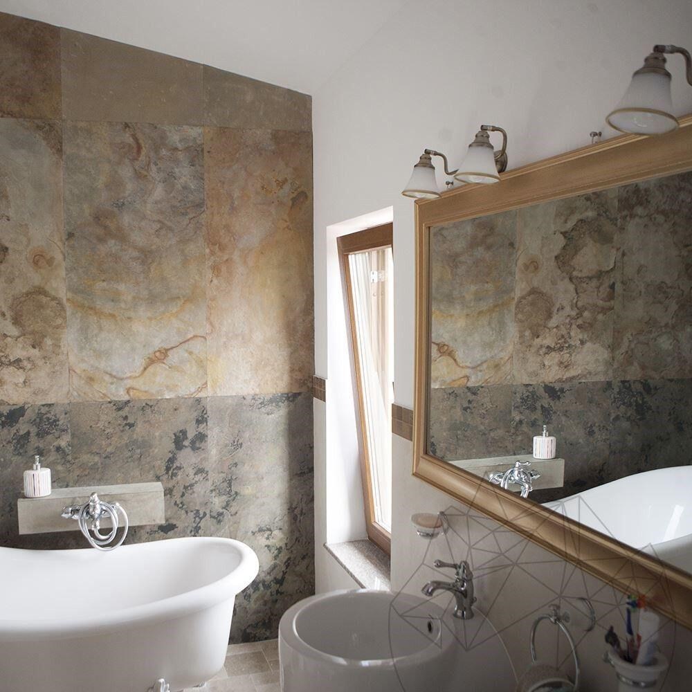 Is there such a thing as a natural stone wallpaper? Yes there is and it gives exterior and interior decorations a fabulous feeling. Produced using German technology, the SKIN-Indian Autumn 244 x 122 cm flexible slate veneer, with its brassy colors and autumn feeling, easily combines the minimalist look with the traditional one. With thickness of 1,5-3 mm (1-2 kg / sqm), this product can be used in different shapes with various materials. With no additional reinforcements required, this "stone wallpaper" is ideal for exterior claddings of facades of shopping centers, vacation homes, fences etc. You'll also be amazed by interior claddings in areas such as living rooms, kitchens, restaurants, saunas, even cellars. Being very malleable, it can also "help" furniture parts (doors, cabinets, tables, etc.). At an attractive price, the SKIN - Indian Autumn flexible slate veneer is easily installed using a simple adhesive, with no special reinforcements required.