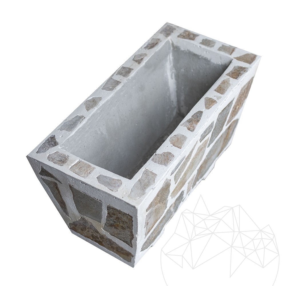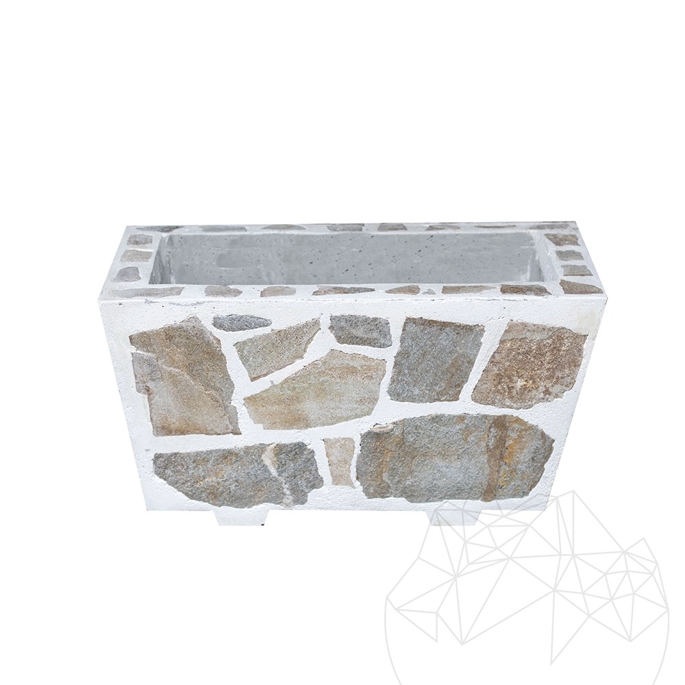 A flower stand from composite material acts as an excellent substitute for other less durable, plastic made products. Cladded with Rhodos polygonal flagstone, this type of flower stand is steady because of its pyramid trunk shape and also features drainage holes at the bottom.