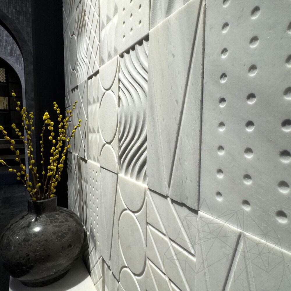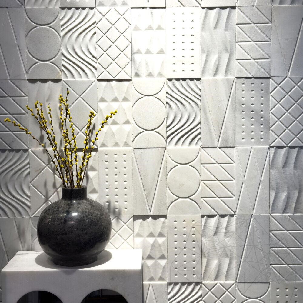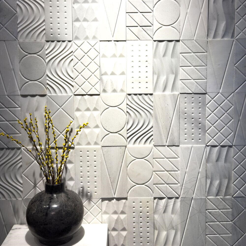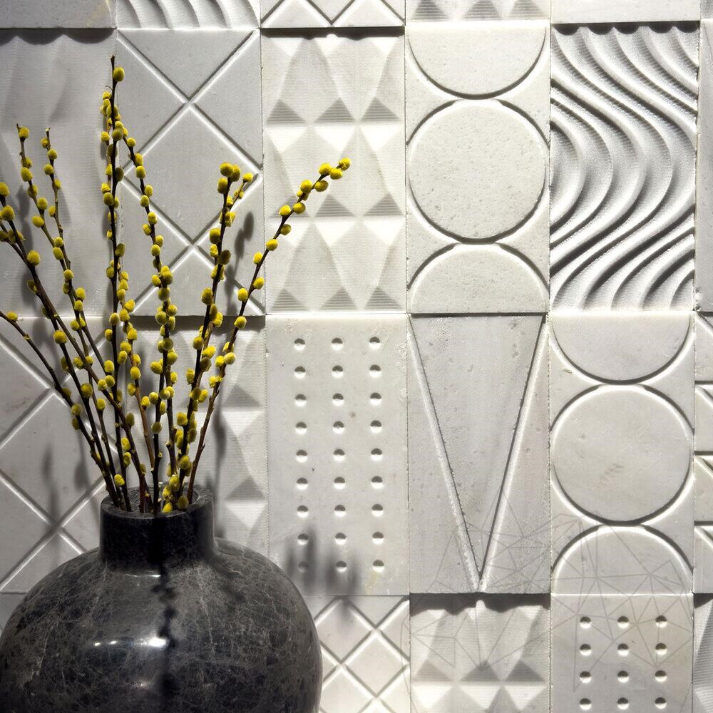 This unique PIATRAONLINE collection, made of New York marble, is characterized by impressive three-dimensional motifs that allow for creative and personalized combinations in any type of project...