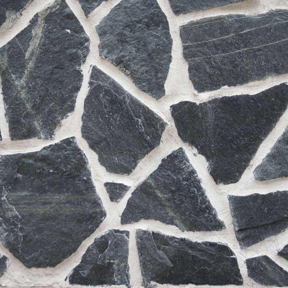 Known as a semi-hard natural stone, the Green Laguna natural slate in its polygonal dark green version, is one of the best choices for pavings and claddings. Throughout its forming processes, this stone was subjected to high temperatures and pressures that have hardened its resistance. The strips from this material's composition often have different thicknesses and its crystals can be seen with the naked eye.