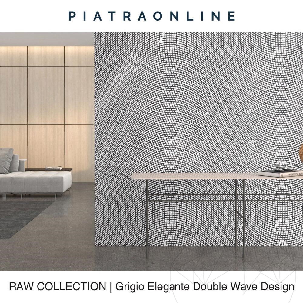 The RAW Collection highlights the natural beauty of the stone, with each slab underlining its original texture and markings. The rough-hewn edges and irregular surfaces of Grigio Elegante Double Wave Design Slab 2 cm certify the raw power of nature and add a distinctive touch of authenticity to any space.