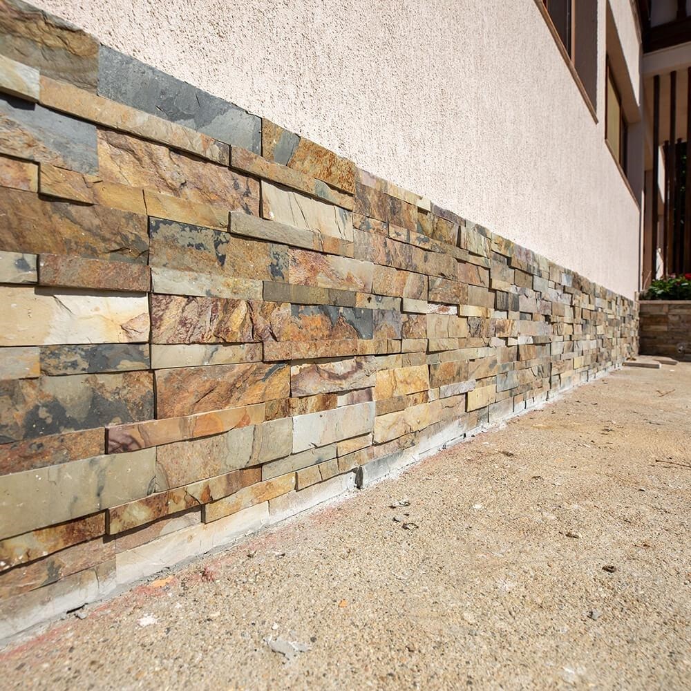 Slate is a sedimentary, metamorphic natural stone, with 6-7 hardness out of 10 on the Mohs scale and low porosity. It withstands fine in acids and water environments and in addition to this has fireproof features. Also, is not influenced by environmental factors (temperature, wind, rain, UV radiations etc.), mechanic shocks and freeze-thaw cycles. Slate can be used for interior or exterior decoration projects and is available as tiles, panels, mosaic, cobblestone, countertops and SKIN flexible slate.