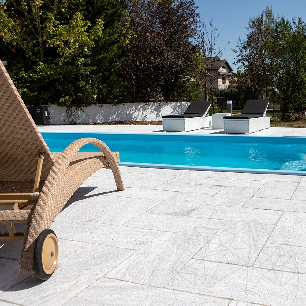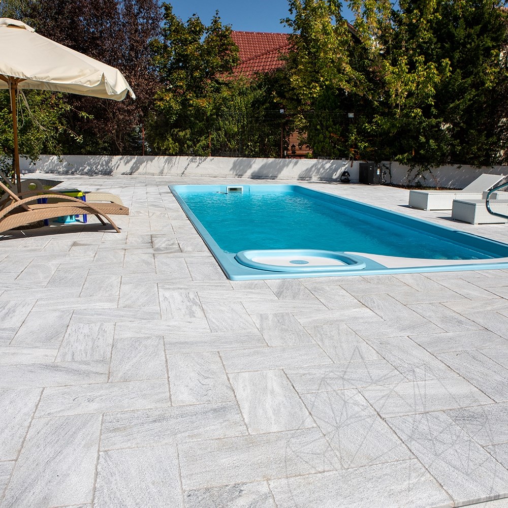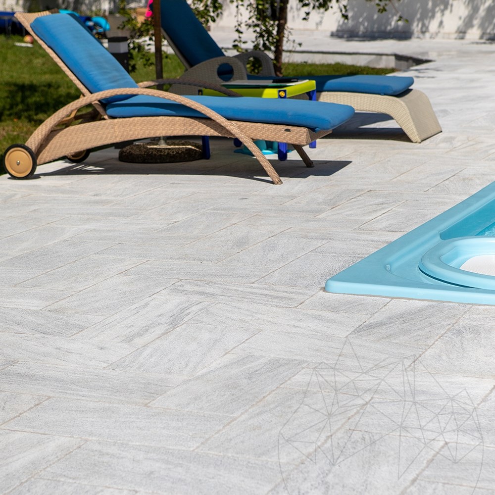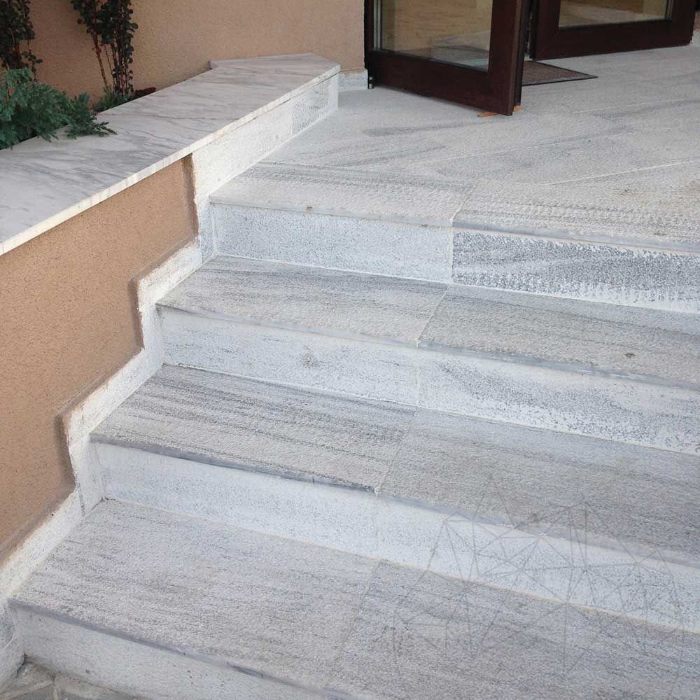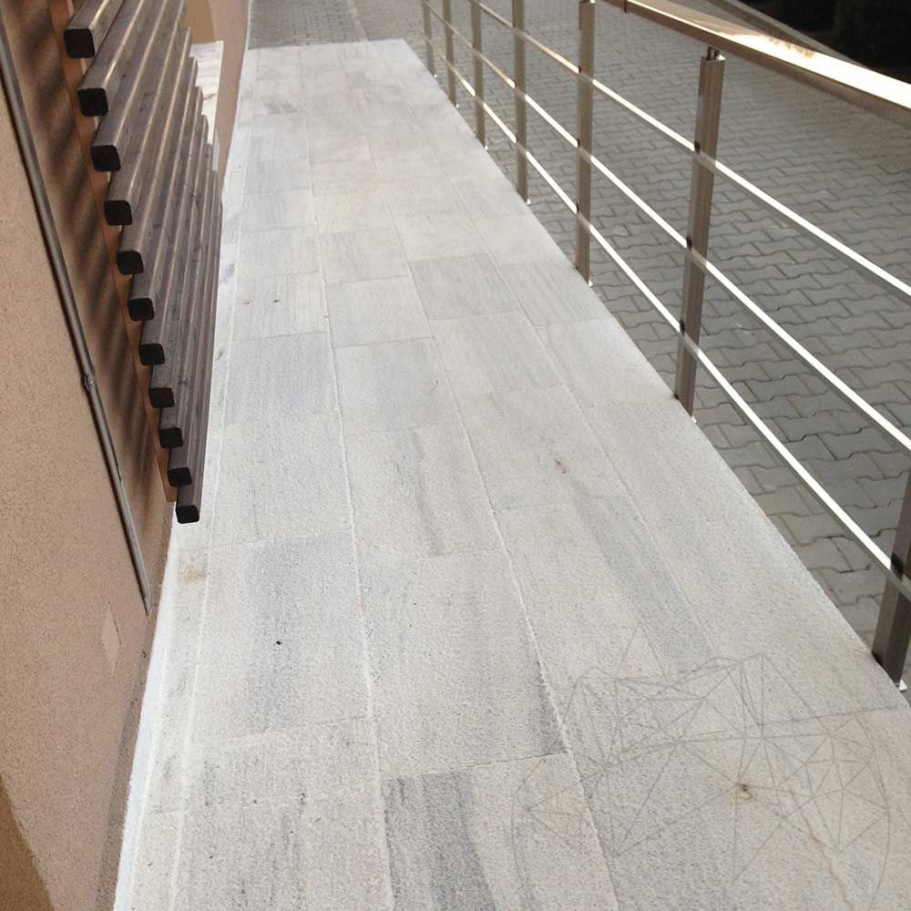 If you want to add a precious simplicity to any interior or exterior arrangement, then one solution can come from the Kavala roughened marble. A roughened surface is also nonskid. The 2cm thickness and quality of the decorative natural stone recommend this product for use in open spaces such as parking lots, pavements, walkways, covered and uncovered terraces or on facades, home bases etc. In terms of interior design, it excels both in vertical claddings, but also in horizontal ones, especially in kitchens, bathrooms, swimming pools, as flooring. White and gray tones coupled with the natural appearance of the marble surface gives any space, private or public, an impetuous opening, gentle and elegant alike.
