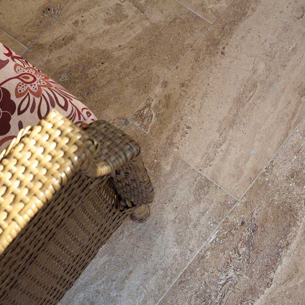 The Latte brushed travertine draws the attention especially through its unique, fine aspect resembling a high quality marble. With or without grouting joints, depending on the desired design, this travertine is used in interior arrangements for cladding kitchens, bathrooms, living rooms, passing hallways, lobbies and hallways. You can also use the elegance and exclusivity of the Latte brushed travertine for exterior claddings: fences, facades, home bases, door or window frames etc. The tiles’ dimension is 30.5 x 61 cm, fact which shortens the installing time a great deal. This will especially be felt when covering large surfaces.