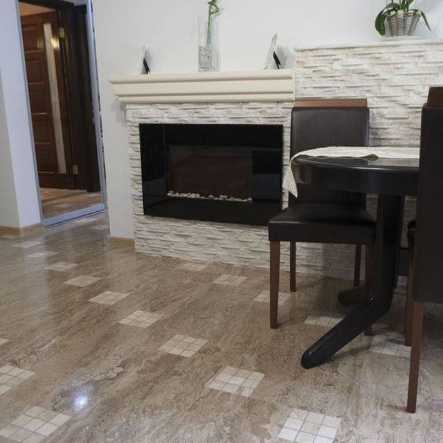 The polished aspect and the uniform chromatic of the Latte natural travertine ensures elegance in any space. Floors, walls, fireplaces, embankments and so on are just a few of this stone’s indoor uses. We can meet it in bathrooms, kitchens, living rooms, hallways, waiting rooms, covered terraces etc. Part of residential or public constructions, this decorative travertine can be used without harming the thermal transfer: it stands a great heat conductor. Outdoors, the Latte travertine with a polished finish and a size of 61 x 30.5 x 1.2 cm can represent a spectacular decorative element when cladding facades, fences, home bases, door or window frames and so on. For a better maintenance of this product we recommend grouting and sealing the surface.