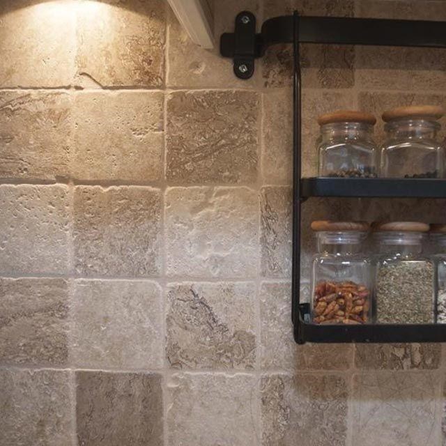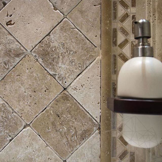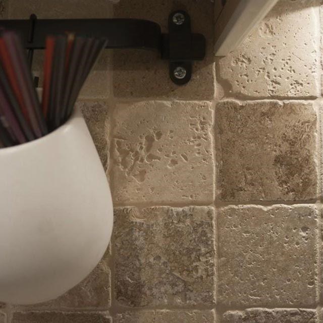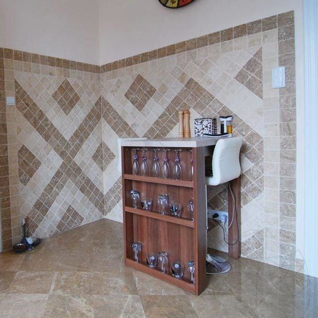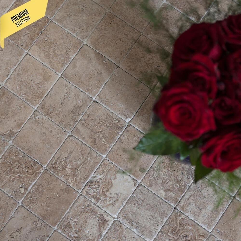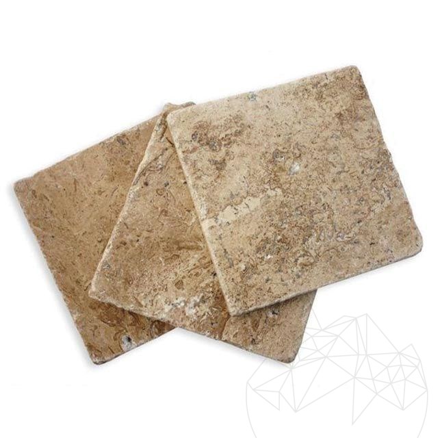 The unique aspect and modern atmosphere of residences are perfectly reproduced by using the Latte tumbled travertine in interior and exterior arrangements. The 10 x 10 cm tiles with a 1 cm thickness are very easy to mount. At the same time, the small dimensions of the tiles offer any space a touch of intimacy. It can be used for cladding walls in bathrooms, hallways, living rooms, kitchens, pools, crossing rooms, clubs, offices etc. At the exterior, the Latte tumbled travertine (10 x 10 cm) can be used for cladding building facades, home bases or fences as well as for creating decorative door or window frames. If you seek for an exterior flooring, on a terrace for example, you can use these Latte travertine tiles. Just make sure that the terrace or balcony is covered or protected from bad weather.