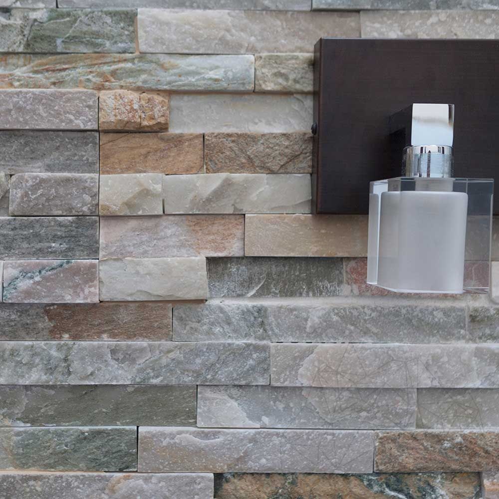 When it comes to claddings with decorative natural stone, you have so much options for both interior and exterior works. For example, you can choose the Filleto Metaksi panel made of natural quartz that greets you with a palette of mosaic-like shades complemented by a splitface finish, resulting in a "must have" product of the season. Claddings with this panel type natural stone are extremely easy to install and maintain.