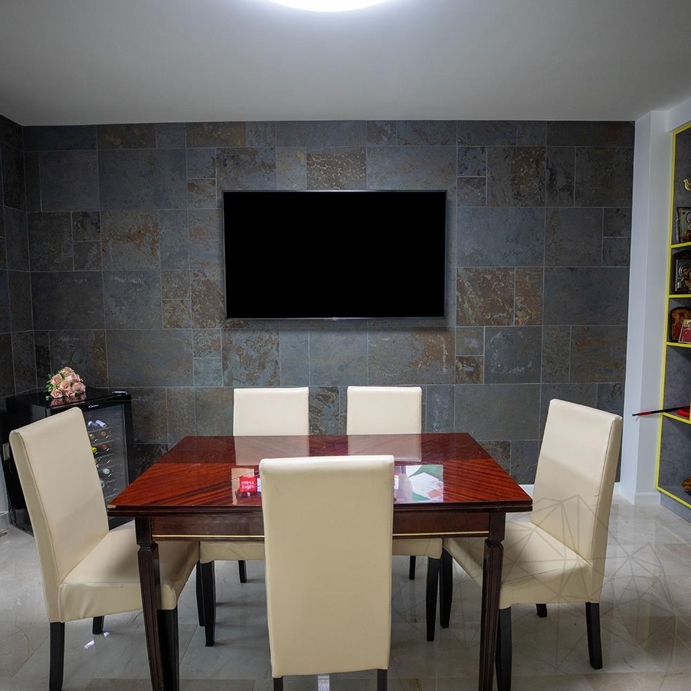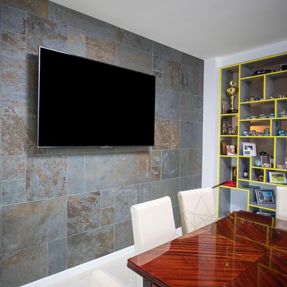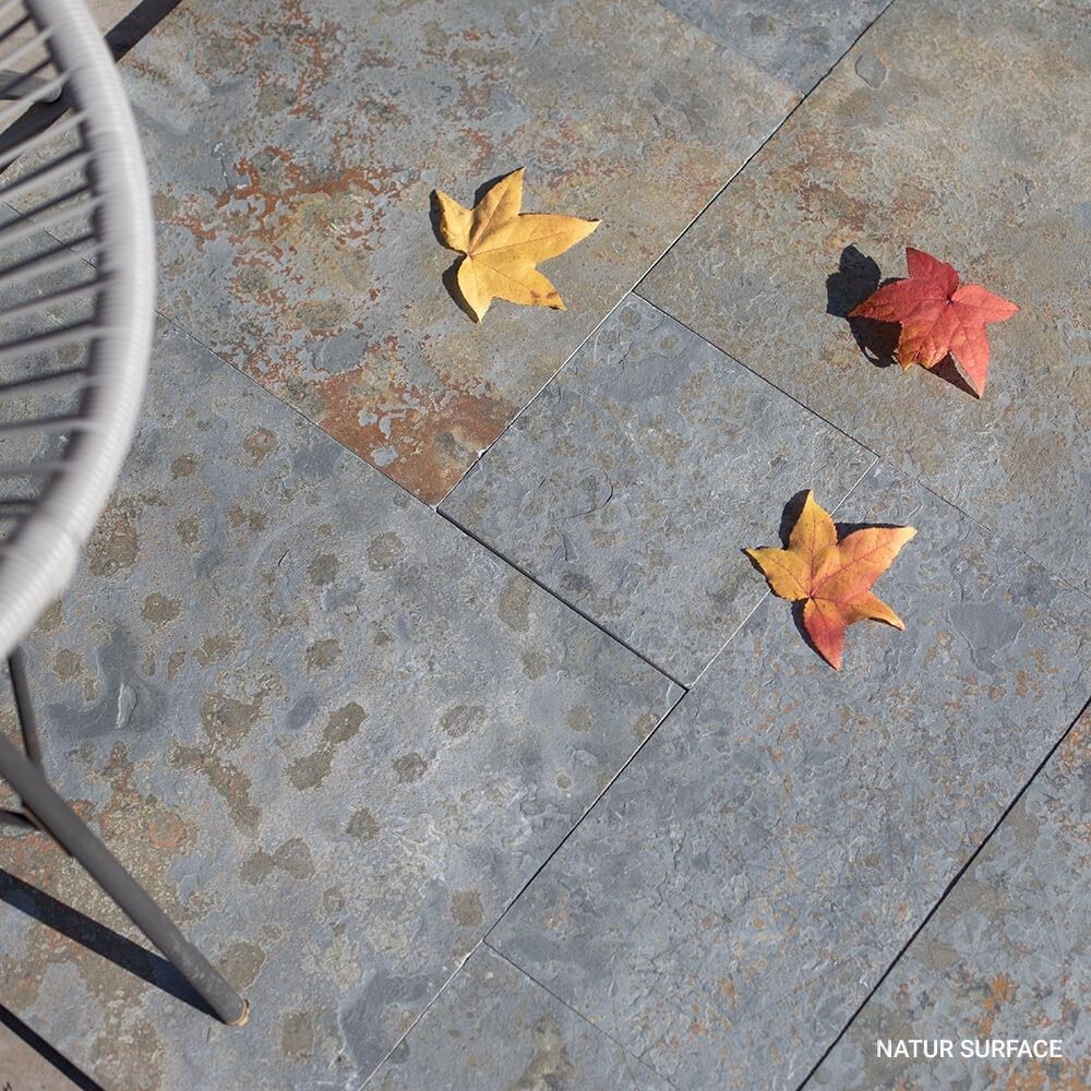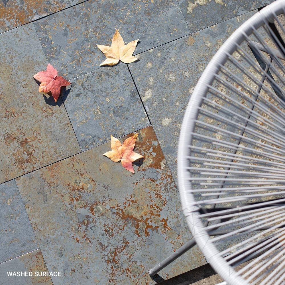 Noisette Multicolor Riven Slate is different from other materials by an intense color variation and the fact that, by being a natural stone, every tile is unique. From shades of green, gray, black up to the lightest tones of cream, Noisette Multicolor Riven Slate fits perfectly into your home decoration project, so you can enjoy the well-being ambience conveyed by natural stone.