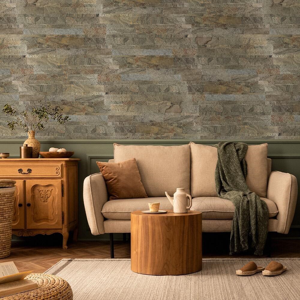 SKIN flexible slate Jeera Green panel has multiple uses, for living room, kitchen, cladding fireplaces or HORECA spaces decoration. When used for interior claddings, panel is recommended as wallpaper, since it is applied directly over drywall, particle board, OSB or brick.