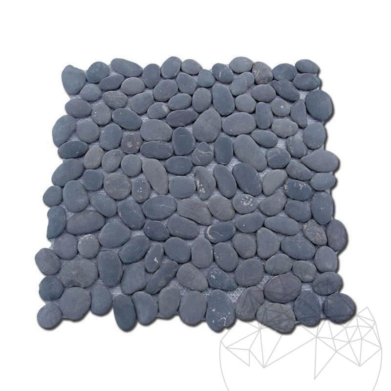 The mosaic has always been a popular material among interior decorations. Originally from Indonesia, this material has a mostly basaltic composition (magnesium and iron). Its high resistance in the face of pressure and humidity, makes this Pebble Black mosaic with a honed finish to be a great choice for bathrooms, kitchens, saunas as well as living rooms, offices or cafes. Vertical claddings can include walls, furniture items, fireplaces and so on. It is easily installed thanks to the fact that the stones come already fixed on nets (30.5 x 30.5 cm). In the case of indoor decorations, be it public or private spaces, this type of mosaic will definitely bring an elegant, modern feeling.