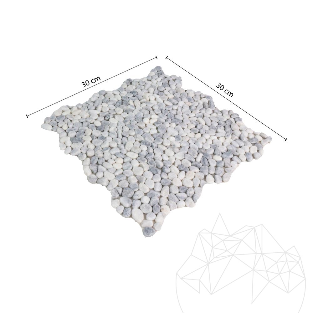 This product comes in a white color and has a slightly shiny aspect. Resistant and durable, yet it must be installed with the help of grouting. We recommend using the Weber Marmo Plus adhesive. Treating the stone with sealants is also recommended in order to help them maintain their natural aspect for a longer period of time. Usage: Small Ice Pebble mosaic can be used both indoor and outdoor. This product can be installed on facades, home bases, fences as well as walls. A common use of this stone is found in reception areas of hotels or business centers.