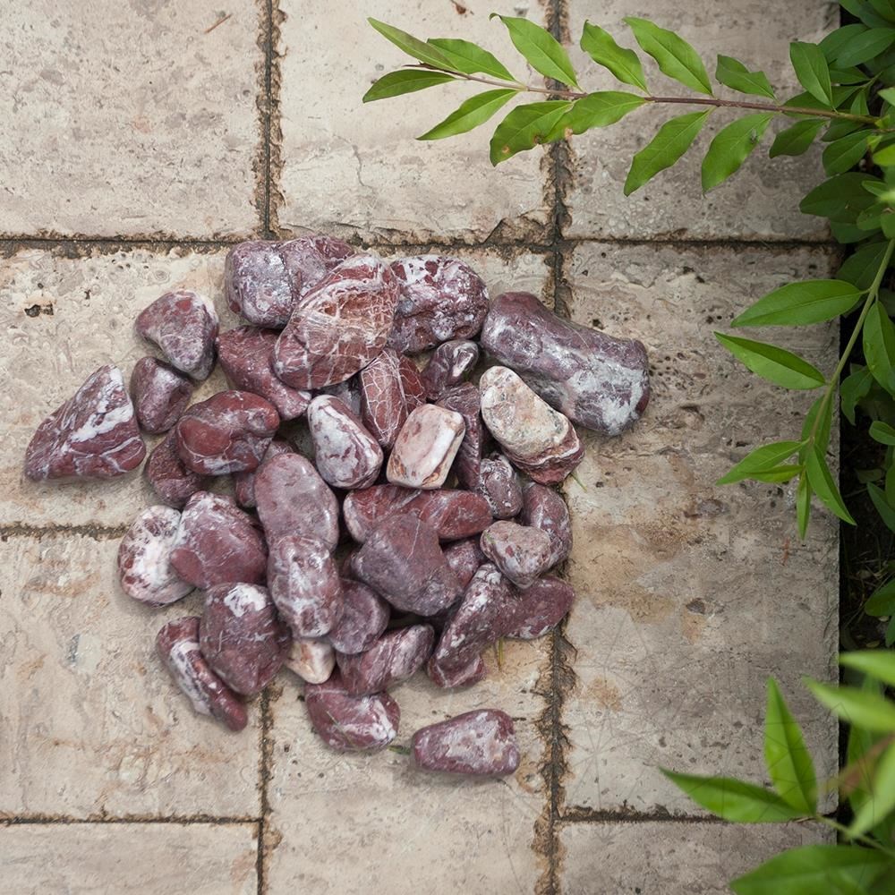 Everything is very simple. Affordable price, easy to handle, this red-shaded gravel radically alters the appearance of any area: park alleys, commercial spaces, flower borders, decorations around garden fountains etc. Red Atlas Marble Pebbles fit classic, modern approaches, as well as those with rustic and Mediterranean accents. Thanks to its light contrast with other natural stones (white, black or green), the product is preferred in minimalist designs on the one hand. At the same time, this Red Atlas Marble Pebble also works with more complex structures, such as "glamor" design.