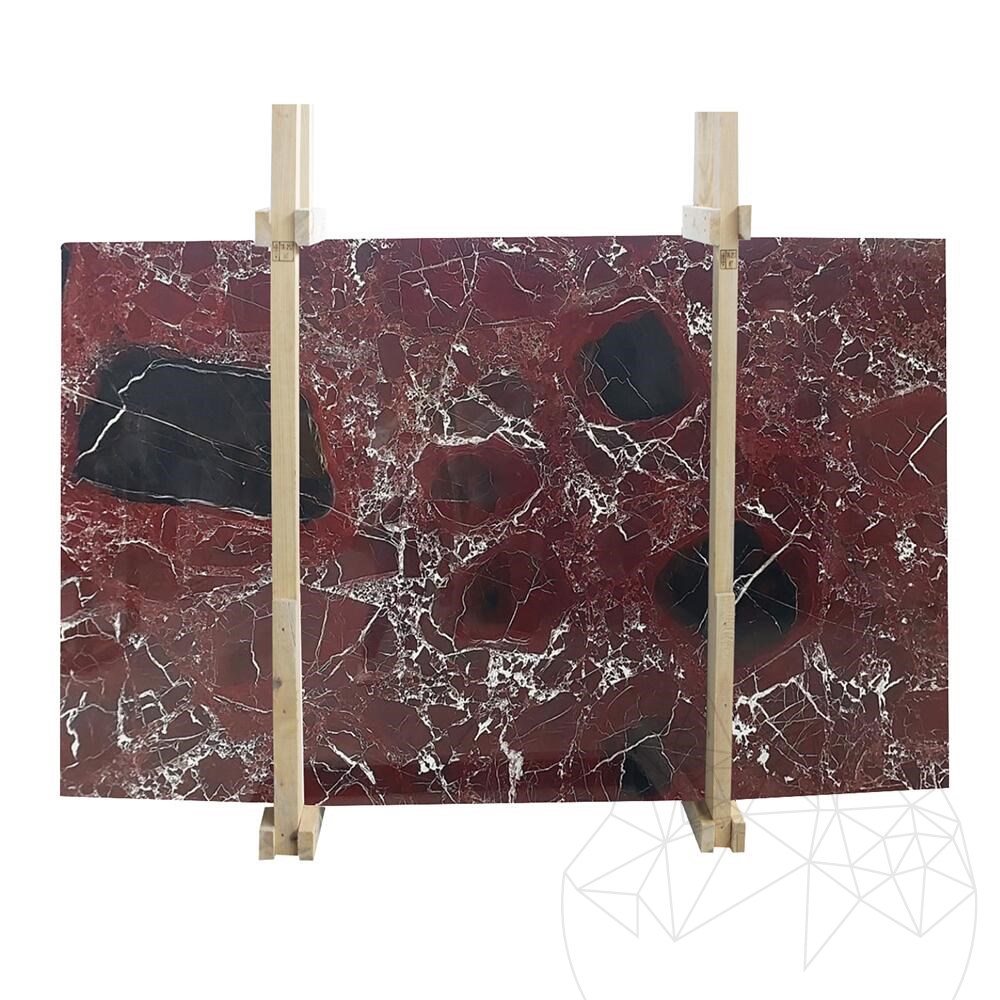 Take your chance with Rosso Levanto, from our slab collection, a deep red tide, intertwined by white strings, and serving as a border for narrow islands.