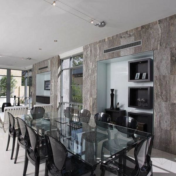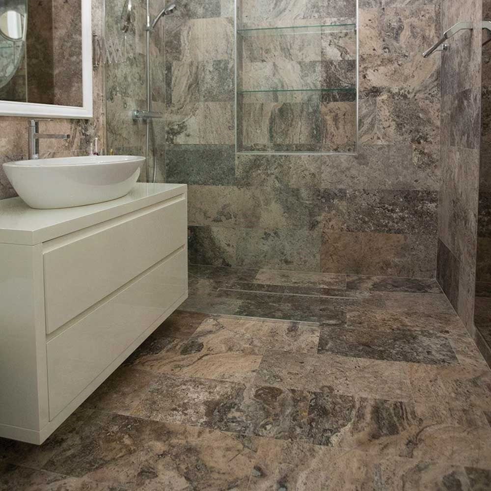 Maybe you were looking for a stone with a more special veiny texture. The Silver Cross Cut tiles made out of natural travertine with a honed finish represent just one of the many solutions offered by our store. This type of travertine faithfully renders the earth's special colors and perfectly fits in humid spaces such as bathrooms and kitchens (floors, walls), but also in living rooms or in decorative door frames or fireplaces etc. In terms of exterior decorations, product can be used for cladding fences, home bases, embankments and even covered terraces. Easily installed on layer of concrete, screed or over the thermal system. In this product's case, the honed color's refinement is happily combined with the natural stone's specific resistance!