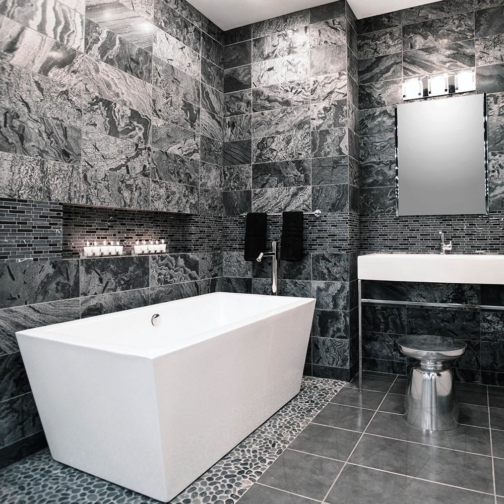 Use this Silver polished slate for floorings, countertop backgrounds, walls, fireplaces and even decorative door frames. When it comes to outdoor arrangements, it’s a perfect choice for fence claddings, home bases or facades. Either used in public or in private areas, this product is guaranteed to give off an exclusivist, discreet and trustworthy touch.