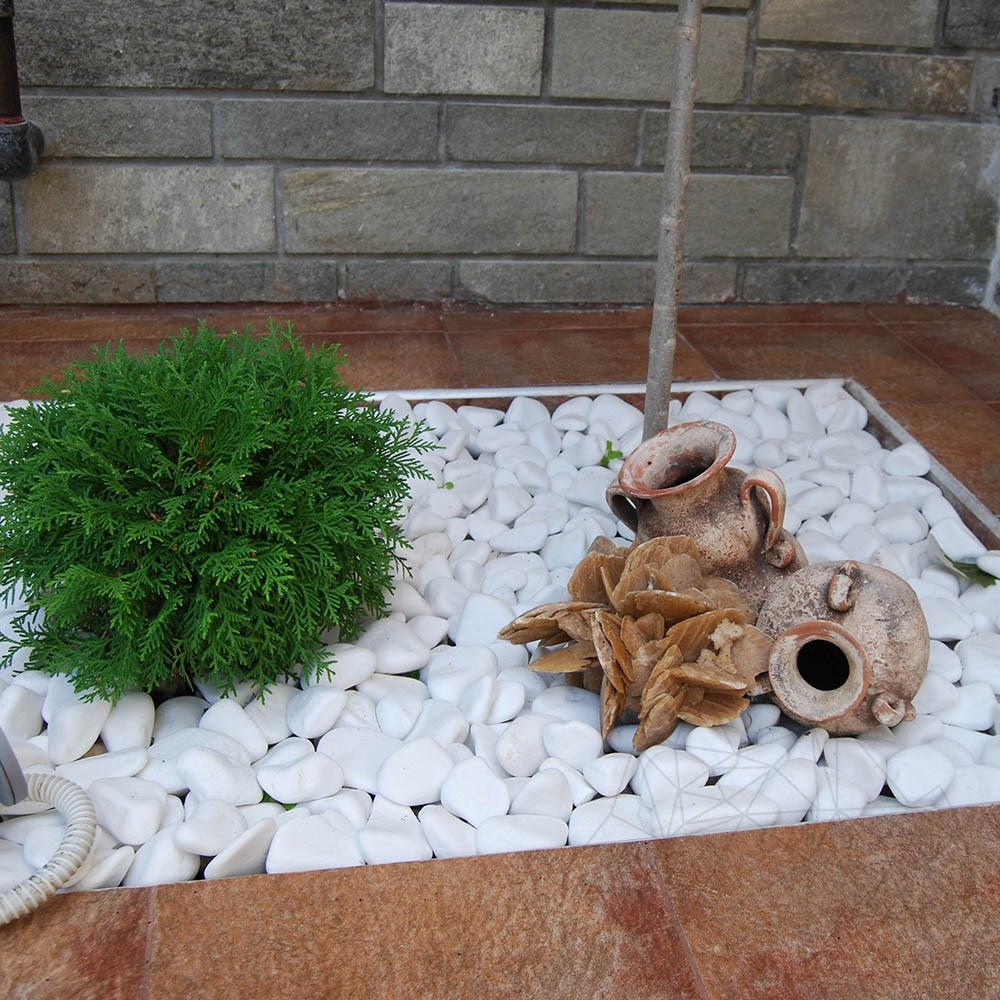 Pebble made of superb white Thassos marble is the best-selling natural ornamental stone, chosen by PIATRAONLINE customers for the sumptuousness and distinction it lends to their outdoor landscaping. Pebble is the generic term for stones with irregular, rounded edges (antiqued), of various sizes, which are used mainly in outdoor decoration: walkways, flower bed borders, children's playgrounds. Thassos marble pebble-stone is used in minimalist gardens, but also in large and medium-sized covered or semi-covered areas. And here we are talking about the decoration of terraces, as well as fences and borders around houses or inside exhibition spaces. It is worth noting that Thassos marble pebble is found in different product categories, depending on the size, starting from 1-3 cm up to 25-50 cm.