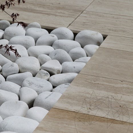In the Thassos marble pebble landscaping, outstanding aesthetic and practical results can be obtained by using DECO UNI (a decorative mosaic spacer for exterior landscaping)!