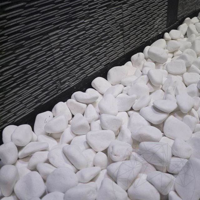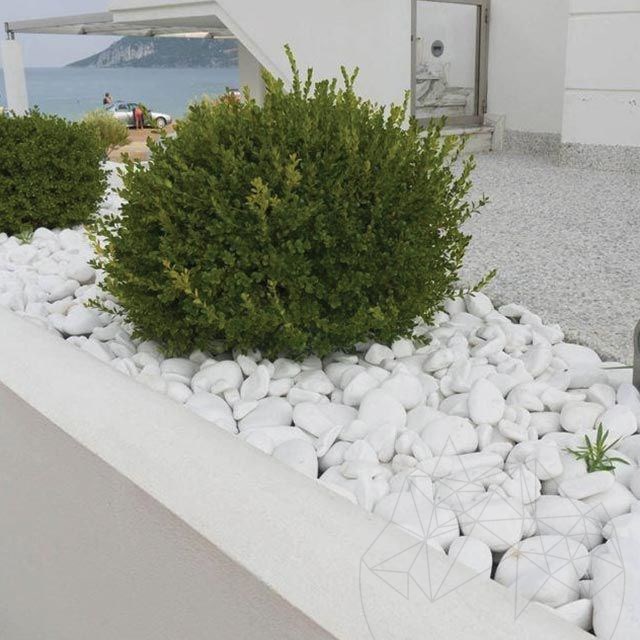 The term ''Pebble'' stands for granulated tumbled (rounded) decorative stone used with decorative purposes in gardens. Eco friendly material obtained out of white milky Thassos marble which does not contain harmful elements in its structure. It is most often used in garden decorations next to flowers, in decorations, simple garden stone designs, interior or exterior vertical claddings.