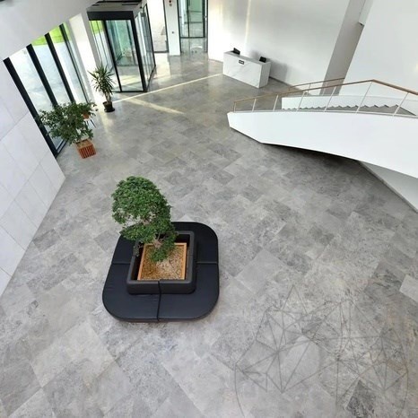 Tundra Light marble 61 x 40.6 x 1.2 cm, matte (non-slip), falls into the category of highly traffic-resistant natural stones. The complex texture of the veining differs from slab to slab, which enhances the relaxing and balanced visual effect. Tundra Light marble can be used for veneering in bathrooms, kitchens, hallways, living rooms, etc. Apart from the most common uses: walls, floors, steps, risers, this decorative natural stone can become a reliable material for bathroom and kitchen countertops, glazes, fireplaces, decorative borders. For outdoor decoration, Tundra Light Marble, matt, 1.2 cm thick, can be used for vertical cladding of facades, plinths or fences, etc. A sophisticated product, but extremely adaptable to many types of decoration!