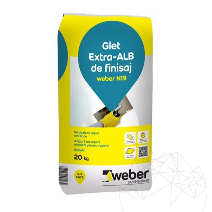 Weber N19 is a super white professional quality resin based plaster with mineral additions. Has a good adherence and resistance. Nontoxic product.