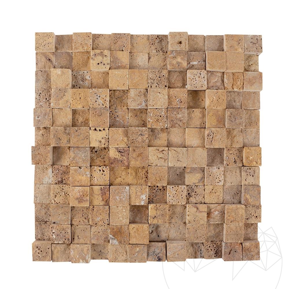 The specific three-dimensional effect of this 3D Yellow travertine mosaic recommends it in interior designs which seek out a powerful visual effect.